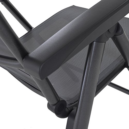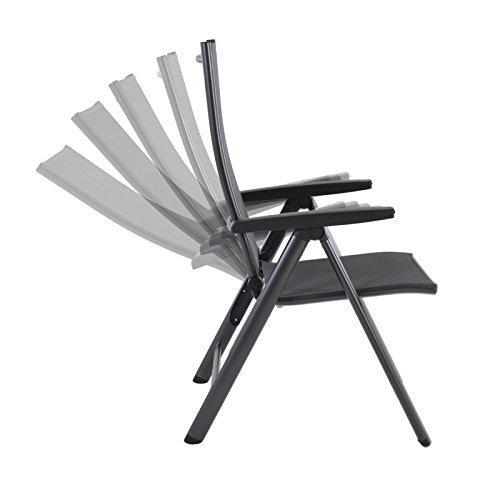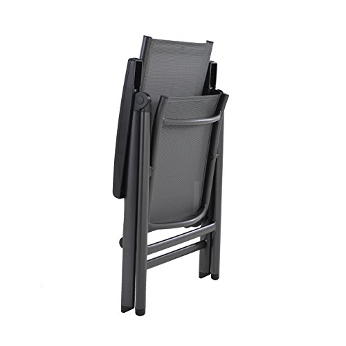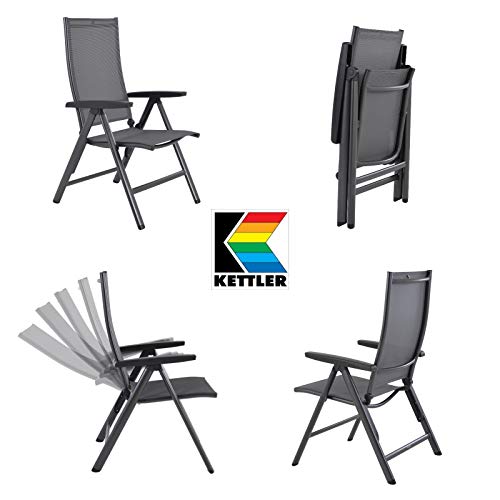 KETTLER Cirrus Gartenstuhl – klappbarer Essstuhl jedweder Aluminium in ANTHRAZIT & Textilgewebe in GRAU, 5-fach verstellbar, 150 kg Tragkraft mit Klappsicherung Der KETTLER Bestseller Gartenstuhl Cirrus besteht jedweder hochwertigen, wetterbeständigen und sehr pflegeleichten Materialien. Der Sitzflächenbezug jedweder langlebigem Textilene passt sich der Körperform perfekt an und sorgt somit für hohen Sitzkomfort. Das wasserdurchlässige, luftige Outdoorgewebe nimmt wenige Male Wasser auf und trocknet schnell noch einmal ab, damit Sie nach Regenschauern aka schnell noch einmal Platz nehmen können. Die Rückenlehne lässt sich in 5 Positionen verstellen, sodass Sie gemütlich essen, lesen, feiern oder sich einfach dessen ungeachtet zurücklehnen und die Sonne genießen können. Dank leichter Materialien und des Klappmechanismus ist dieser Stuhl leicht zu handhaben – wenn er nicht benötigt wird, können Sie ihn platzsparend aufbewahren. Zusätzlich ist der Gartenstuhl Easy durch sein modernes und zeitloses Design einfach zu generalisieren. Dieser Stuhl ist perfekt, um das schöne Wetter im Garten, auf der Terrasse, auf dem Balkon oder beim Campen zu genießen – Made in Germany.