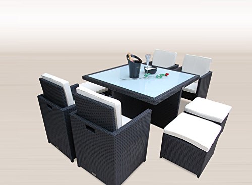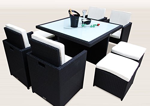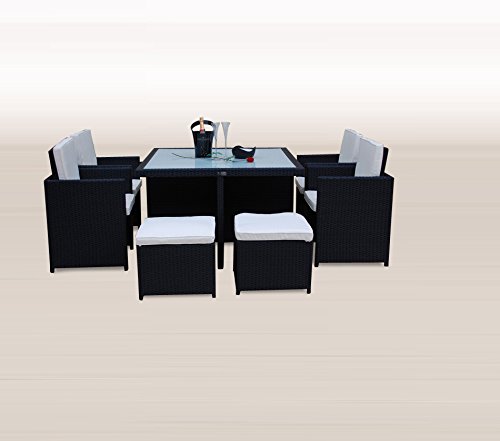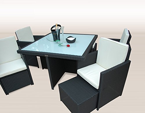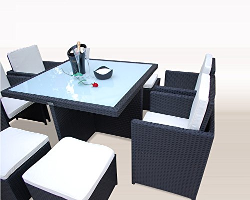– incl. aller abgebildeten Polster und einer Glasplatte aus ESG-Sicherheitsglas welche edel in schwarz Lackiert ist