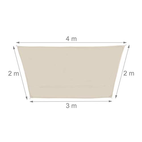 UV-Schutz: Beiges Sonnensegel als Umschlag vor Sonneneinstrahlung – Trapez Segel: ca. 3x4x2x2 m