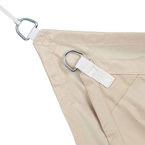Es kann immer nicht schnell genug abermals Sommer werden. Wenn die ersten Sonnenstrahlen da sind, möchte man diese auch auskosten. Hinwieder direkte Sonneneinstrahlung birgt auf Dauer die Gefahr eines Sonnenstichs. Das beige Sonnensegel in Trapezform spendet nicht immerhin großzügig Schatten, es bietet gleichzeitig auch einen wirksamen UV-Schutz. Schützen Sie sich, Ihre Kinder und frei laufende Vierbeiner vor gesundheitsschädlicher Sonneneinstrahlung und genießen Sie den Sommer in vollen Zügen. Nutzen Sie das Sonnendach über der Terrasse, auf dem Balkon, am Sandkasten oder Pool sowie beim Camping. Der Schattenspender wird mit Spannseilen befestigt, die durch Haken am Sonnentuch gezogen werden.