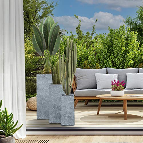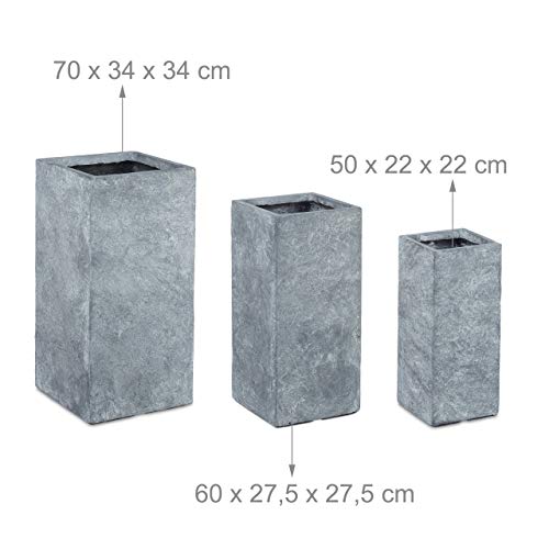 Relaxdays Pflanzkübel im 3er Set, Steinoptik, wetterfest, UV-resistent, 3 Größen, für außen, eckige Blumentöpfe, grau