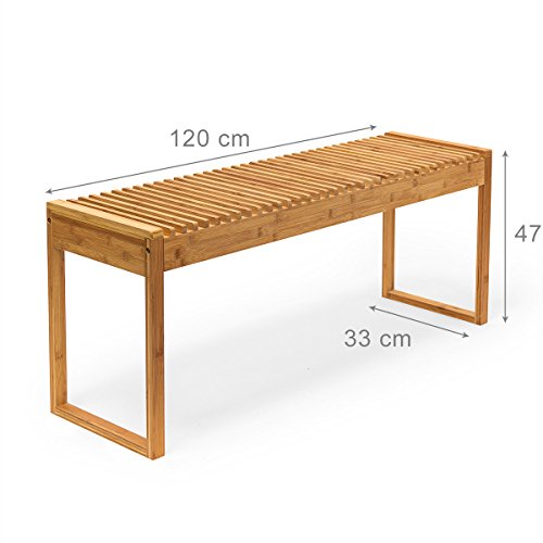 Diese Sitzbank aus Bambus eignet sich zur Benutzung drinnen und auf der Terrasse oder dem Balkon. Ihr Bambusholz ist sehr robust und widerstandsfähig und benötigt eine Umgebung, in der eine gewisse Grundfeuchte herrscht. Damit ist die Bank auch ideal, um im Bad oder Wintergarten ihre natürliche Schönheit zu entfalten. Die bequeme Sitzfläche bietet Platz für 3 bis 4 Personen und lässt sich durch das geringe Gewicht der Gartenbank schnell und einfach an jedem beliebigen Ort aufstellen.