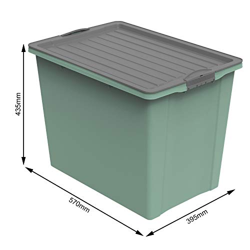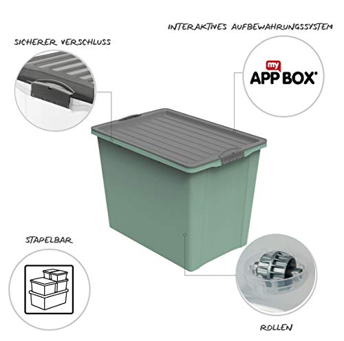 Rotho Compact Aufbewahrungsbox 70l mit Deckel und Rollen, Kunststoff (PP recycelt) BPA-frei, grün/anthrazit, A3/70l (57.0 x 39.5 x 43.5 cm)