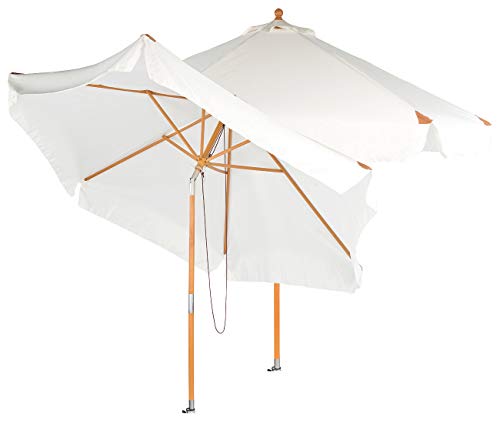 Ideale Schattenspender für Garten und Terrasse • Platzsparend zu verstauen: Schirm-Stange einfach auseinanderdrehen • Material: Polyester (Bespannung), Buchenholz mit Metall-Applikationen (Schirm-Gestell)