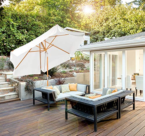2 Sonnenschirme je mit Holzgestell, Deko-Elemente für die Schirm-Spitze und deutscher Anleitung. Balkonschirme – Unabhängig davon relevant oder im Rahmen zu: Sonnensegel, XXL