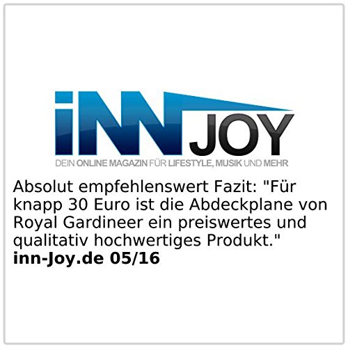 inn-Joy.de (05/16): Mit Herz und Seele empfehlenswert Fazit: „Für knapp 30 Euro ist die Abdeckplane von Royal Gardineer ein preiswertes und qualitativ hochwertiges Produkt.“ .