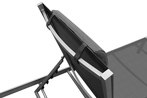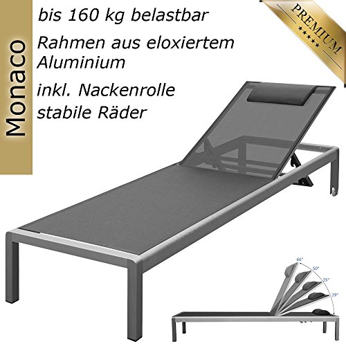 RS Abschluss ‚Monaco XXL‘ Outdoor Strandliege ganz eloxiertem Aluminium mit reißfestem Textilbezug (bis 160 kg stabil), 5-fach verstellbarer Rückenlehne und Rollen, Alu Gartenliege inkl. Nackenrolle – Bezug: Grau