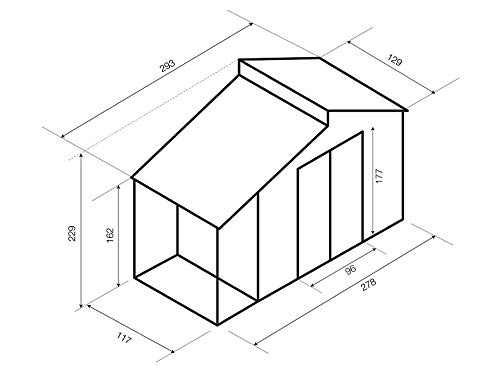 Gartenhaus jeder Metall mit Hilfe von Veranda, Färbemittel Steinkohle, Außenmaße 278 x 127 x 195 cm, Grundmaße 268 x 117 cm, Türmaße 96 x 162 cm.