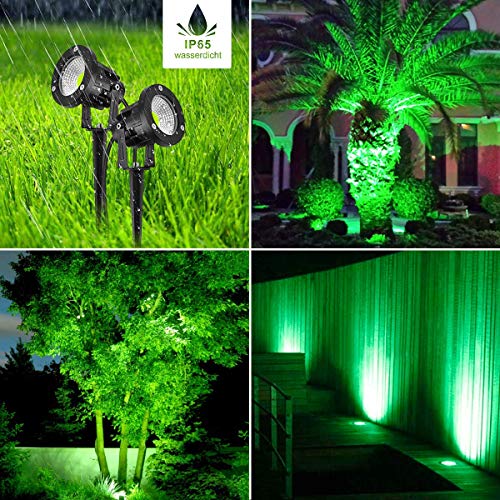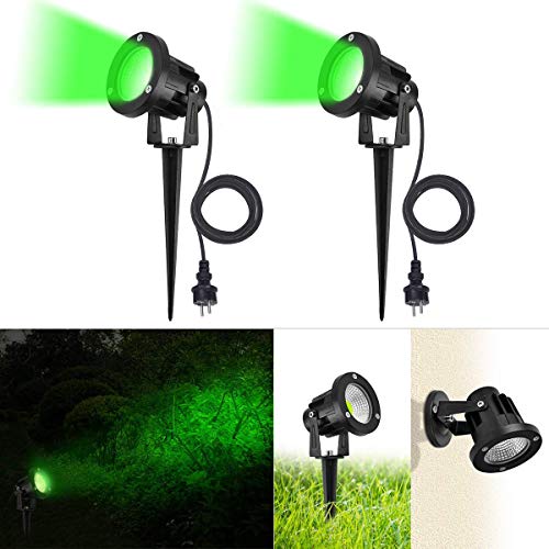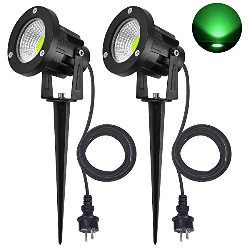 SanGlory 2er Set 7W LED Strahler Grün-Licht mit Erdspieß, 2m Kabel mit Stecker, Led Garten Beleuchtung, Gartenleuchte…