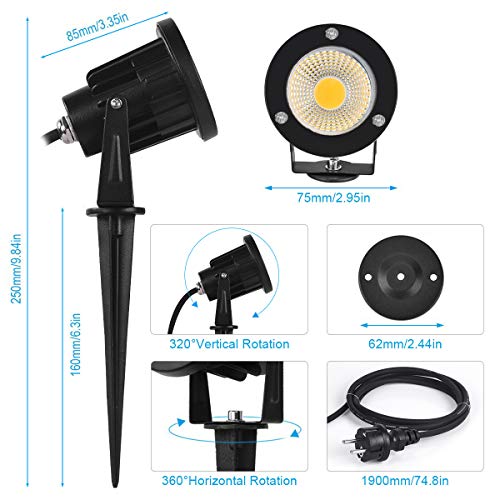 ⚡ 【7W LED Gartenstrahler Hohe Helligkeit】– Verbesserte COB-LED-Chips, die heller und stabiler qua Standard-LED-Chips sind, 800 Lumen gleichmäßiges Licht von 3000K, hohe Lichtausbeute, lange Lebensdauer, geringere Lichtabschwächung.