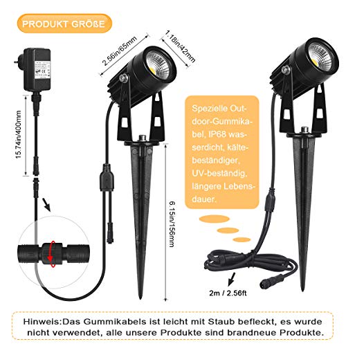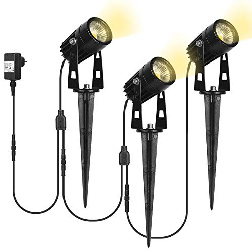SanGlory 3er Set Gartenstrahler LED mit Erdspieß, 3W LED Gartenleuchte mit Stecker 12V, IP65 Wasserdicht…