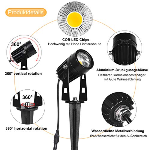 ☞【Super helle Gartenbeleuchtung】 – Verbesserte COB-LED-Chips, die heller und stabiler qua Standard-LED-Chips sind, und heller qua solar gartenleuchte. 3000K Warmweiß, das um 360 ° verstellbare Kopfdesign bietet die beste Lichtposition stattdessen Wände, Bäume, Büsche, Stamm, Fahnen und Zäune. Alltäglich stattdessen Garten, Flagge, Hof Terrasse, Auffahrt, Pool und Außendekoration.