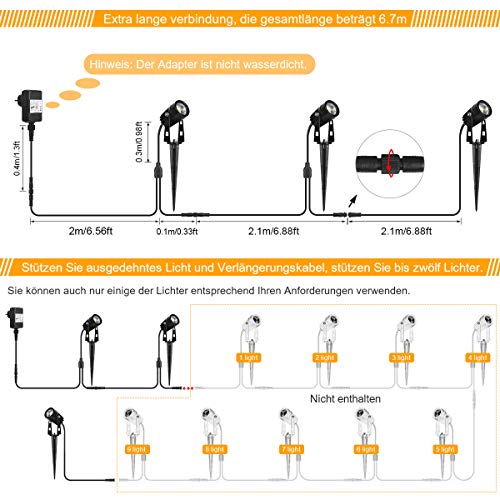 ☞【3 in 1 Gartenleuchten mit 6,6M Lange Verbindung】- Die verbesserte Gartenbeleuchtung Led übernimmt das neue Parallelmodell und die Gesamtlänge dieser 3 Gartenplätze kann 6,6 m erreichen. Der Abstand vom Stecker zur ersten Lampe beträgt 2,4 m und der Abstand zwischen den Lampen 2,1 m.