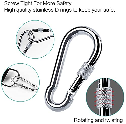 【Stabiler D-Ring aus Edelstahl 304 und Karabiner】: Die 10mm Karabiner und 6mm D-Ringe sind alle aus hochwertigem 304 Edelstahl geschmiedet. Mit unserem Schaukel Aufhängung können Sie sich beim Schwingen keine Sorgen machen.Reißfestem Hängematten sind widerstandsfähig gegen Sonnen- und Wasserschäden und andere Raues, Metallbeschläge rosten niemals und verblassen niemals.