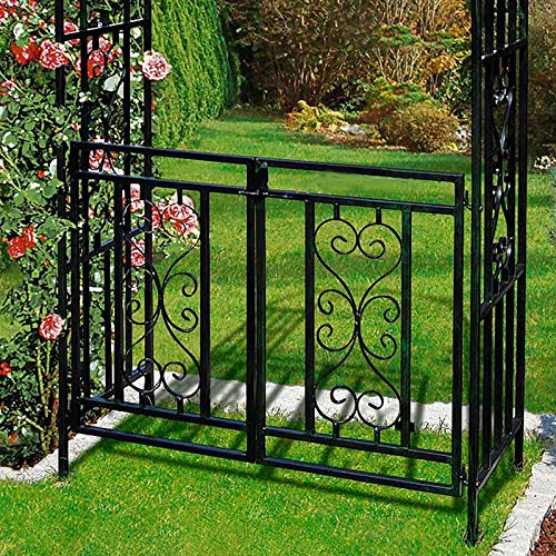 KLASSISCHES DESIGN – Elegant gewölbte Gartenlaube mit verriegeltem zweitürigem Tor mit aufwändiger Schriftrolle für Stil und Interesse.