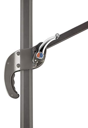 Das Alu/Stahl-Gestell ist anthrazitgrau pulverbeschichtet und passt somit optisch sehr gut zur Bespannung. Der Schirm verfügt über ein massives Drehgelenk mit Fußpedal. Der Handgriff mit integrierter Kurbel ermöglicht sowohl ein komfortables und leichtes Öffnen und Schlussfolgern des Schirmes, als auch eine individuelle Streichung der Dachneigung. Durch Betätigen des Fußpedals am Drehgelenk lässt sich der Schirm zudem um 360° drehen, wodurch es Ihnen möglich ist, den Sonnenschutz ohne in Hülle und Fülle Ertrag qualifiziert der Sonneneinstrahlung auszurichten.