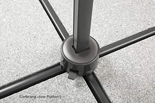 Im Lieferumfang enthalten ist ein Plattenständer für 4 Wegeplatten in der Größe 50 x 50 x 5 cm (Platten nicht enthalten), welcher dem Schirm einen sehr stabilen Halt gibt. Optional können Sie zu dem Schirm auch die abseits für Ampelschirme hergestellten Einlegeplatten für Ständerkreuze (Art. 312-15), eine Bodenplatte zum Einbetonieren (Art. 897-00), einen Bodenanker zum Eingraben (Art. 897-50), ein Universal-Bodendübel zum Eindrehen (Art. 897-55), oder unseren fahrbaren Ampelschirmständer (Art. 319-15) nutzen. Zu dem fahrbaren Ampelschirmständer kann eine Lenkstange (Art. 319-50) dazu erworben werden, welche das mühelose Bewegen des Schirm
