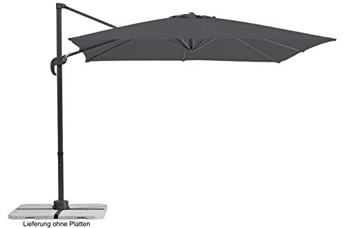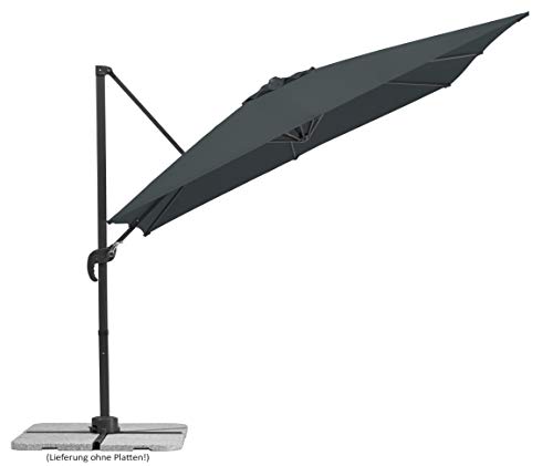 Schneider Sonnenschirm Rhodos Junior, anthrazit, ca. 270 x 270 cm, 8-teilig, quadratisch. Inklusive Plattenständer statt dessen Wegeplatten (Ablieferung ohne Platten, je Arbeiterschließfächer mind. 30 kg)