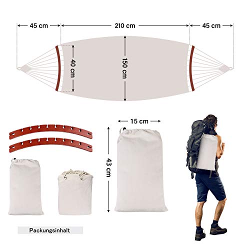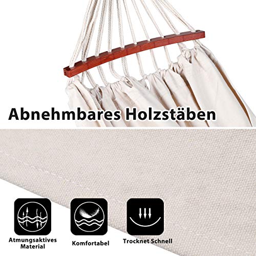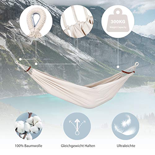 Sekey Hängematte Outdoor 210×150cm, 100% Baumwolle Atmungsaktiv 300 kg Belastbar für Camping Garten mit Tragetasche…