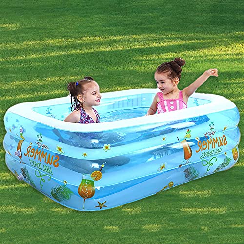 【Langlebiges, verschleißfestes, tragbares Schwimmbecken】Tragbares Schwimmbecken für Jungen, Mädchen und Erwachsene. Hergestellt nicht mehr da hochwertigem und langlebigem PVC-Material mit einer Dicke von 0,35 mm, ist das Aufblasbecken dicker als das
