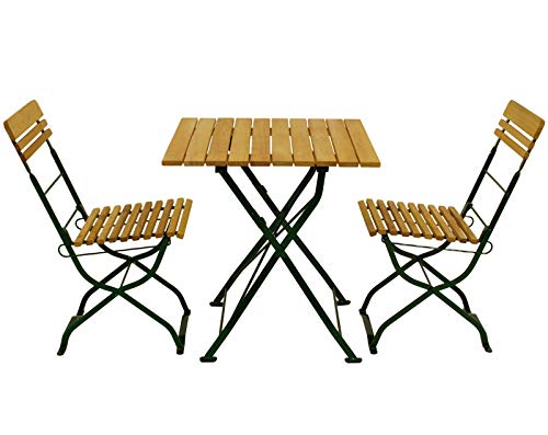3-teiliges Biergartenset,Gestell Flachstahl dunkelgrün pulverbeschichtet, Belattung Robinie.