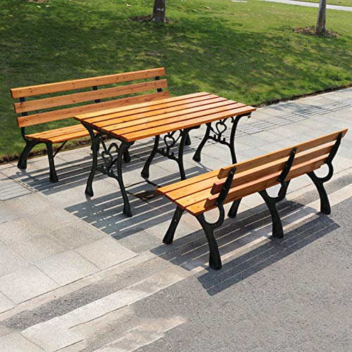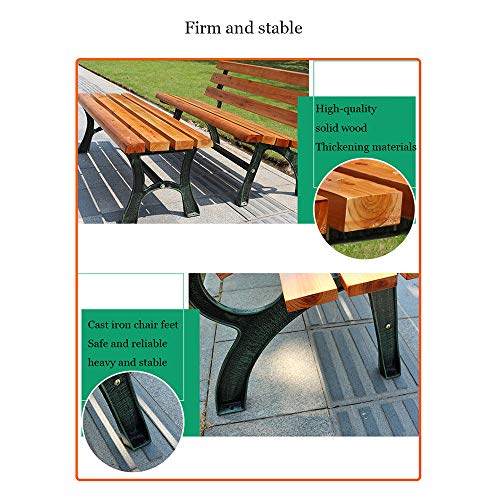 **Hochwertige Außenbänke: Der Rahmen besteht aus rostfreiem Gusseisen und der Sitz besteht aus korrosionsbeständigen Massivholzlatten, die dem wechselhaften Wetter im Freien standhalten.