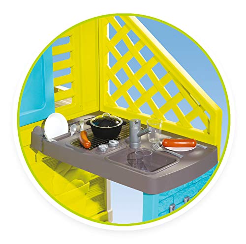 Mit Spielküche: Für kleine Chefköche verfügt das Kinderhaus über eine Küchennische inkl. Spülbecken, Wasserhahn, Kochfeld und Geschirrablage. Durch reichhaltig Zubehör gelingt jedes Gericht genauso wie bei Mami
