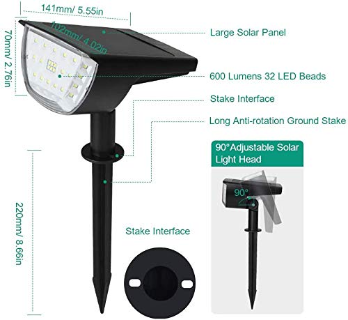 💡 【2-in-1 Installationsoptionen】✔️Stecken Sie diese Garten Solarlampen im Freien in den Boden, um den Garten, die Terrasse und die Bäume als Wegeleuchte zu beleuchten. ✔️OuntMontieren Sie sie an der Wand mit den Schrauben, die als Wandleuchte enthalten sind Der Abstrahlwinkel von 150 ° und das Solarpanel können um 90 ° einstellbar sein und für Patio, Veranda, Verschwunden, Deck, Pool, Hof, Garten, Garage, Auffahrt, Verschwunden usw. Verwendet werden.