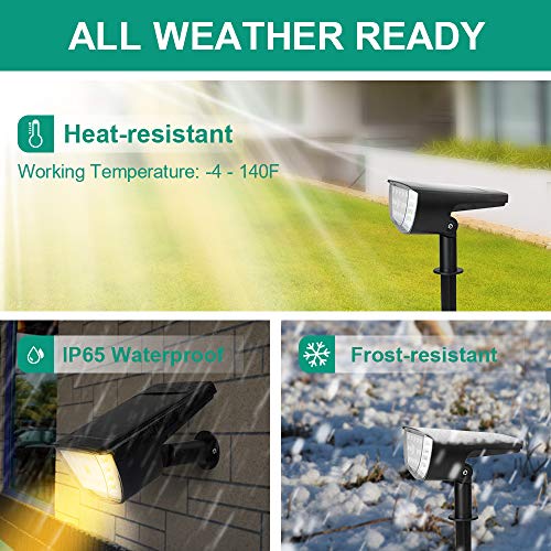 💡 【 IP65 wasserdicht】 IP65 wasserdicht, frostsicher und hitzebeständig, Arbeitstemperatur: -4 bis 140 ° F und starker schlagfester Antiblockiersystem-Kunststoffkörper helfen diesen Garten Solarlampen, jedweder Arten von schrecklichem Wetter wie Regen, Schnee, Frost, Hitze zu tolerieren Das ist langlebig genug für den Einsatz im Freien zu aus Jahreszeit.
