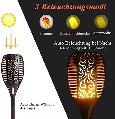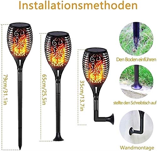 🔥 【SOLARGARTENLICHT MIT FLAMMEN】 Dieses Solarlicht für den Außenbereich ist eine sichere Alternative zu den echten „Flammen“. Solarlichtgarten mit 12 LEDs bietet Ihnen einen realistischen flackernden Flammeneffekt. Jedes Licht flackert warmes gelbes Licht und imitiert extrem realistische und natürliche Tanzflammen.