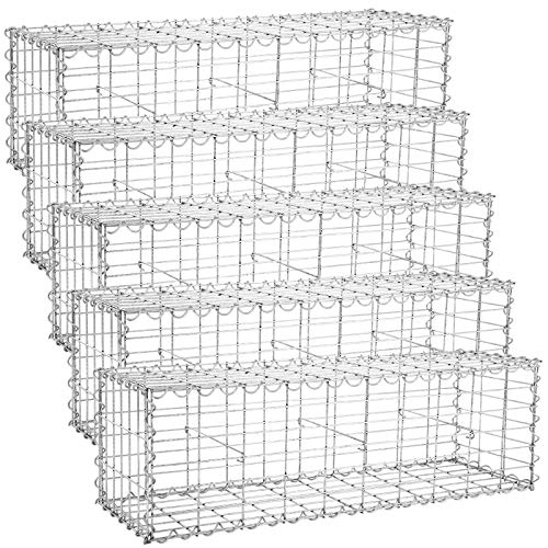 SONGMICS Gabionen, Steinkorb, Gabionenkörbe, Drahtzäune, 5er Set, mit 5 x 10 cm engmaschigem Gitter, aus rostfreiem…