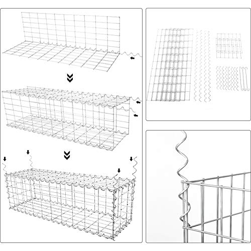 KEIN WERKZEUG ERFORDERLICH: Obwohl das Endresultat kompliziert wirkt, gelingt der Aufbau dieses Drahtzauns einfach und schnell. Fügen Sie die verschiedenen Gitterdrähte zusammen und fest verbinden Sie sie via denbeiliegenden Spiralen. Vergessen Sie bitte nicht, die Abstandshaken anzubringen, um die Dauerhaftigkeit der Gabione zu anheben, wenn Sie sie via Steinen befüllen