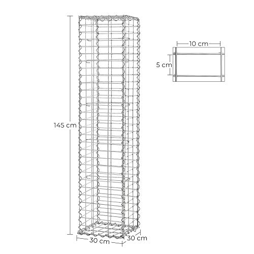 SONGMICS Gabionen, Steinkorb, Drahtzaun, mit 5 x 10 cm engmaschigem Gitter, aus rostfreiem verzinktem Stahl, Gartendeko…