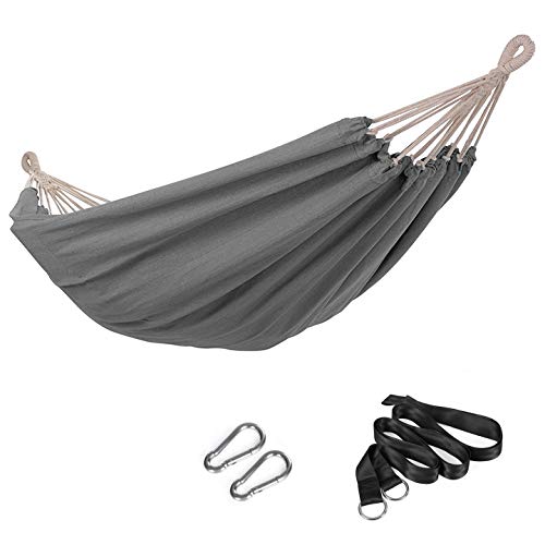 ÜBERALL ABHÄNGEN: Im Lieferumfang sind 2 Befestigungsgurte sowie Karabiner enthalten, sodass Sie die Hängematte problemlos im Außenbereich aufhängen können. Forschen Sie sich ein ruhiges Plätzchen, 2 starke Bäume und präparieren Sie ein Nickerchen im Freien