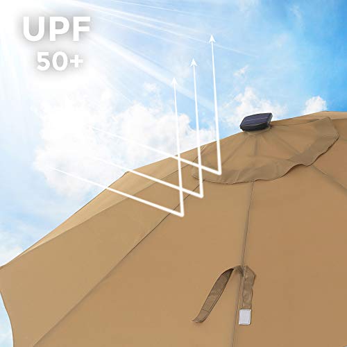 SONGMICS Sonnenschirm mit LED-Solar-Beleuchtung, Gartenschirm Ø 270 cm, UV-Schutz bis UPF 50+, knickbar, mit Kurbel zum…