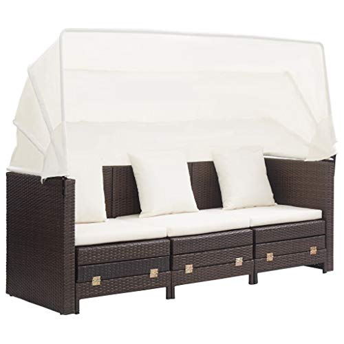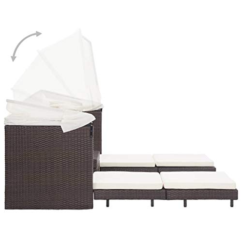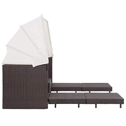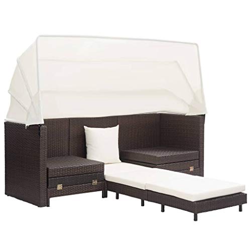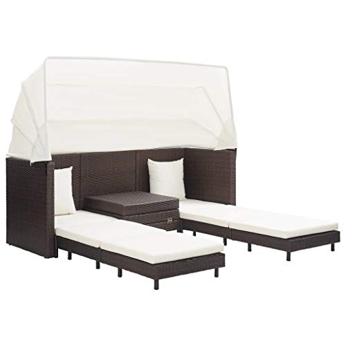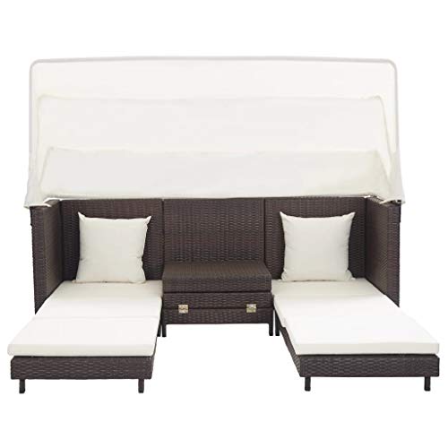 Sonnenliege Rattan Ausziehbar Sonneninsel Outdoor mit Dach Gartenliege Garten Lounge Set Loungemöbel Loungebett Doppelliege Liegebett Gartensofa 3-Sitzer Ausziehbares