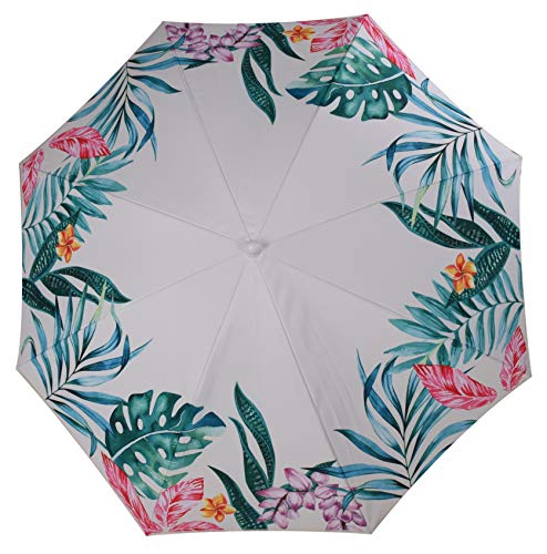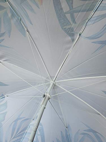 Schöner Sonnenschirm Anhand UV-Abschirmung 40+ im Blätter-Design, schicklich sondern den Strand, im Gebilde ebenso auf den Balkon. Anhand praktischem Knickgelenk ebenso der Sonnenschirm ist höhenverstellbar. Abwärts am Stamm Anhand kleiner Spitze um den Schirm im Strandboden zu versteifen.