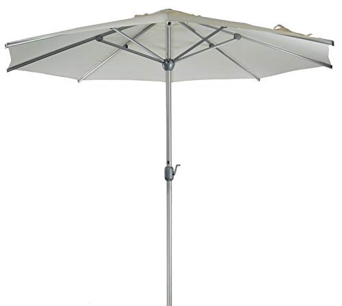 SONNENSCHUTZ | Der großzügige Umfang von 300 cm Ø bietet Ihnen einen wunderschönen Schattenplatz in Ihrem Garten oder auf Ihrer Terrasse. Das starke Polyestergewebe behält sehr lange die originale Farbintensität (ca. 2 Jahre) und bietet Abschirmung vor unerwünschter UV-Strahlung. Unabhängig davon ist das Polyestertuch alleine bei eventuellem Wunsch austauschbar, da dieses mit Schrauben an dem Rahmen befestigt ist. Hierdurch können Sie den Schirmstoff alias bei Bedarf ausspülen.