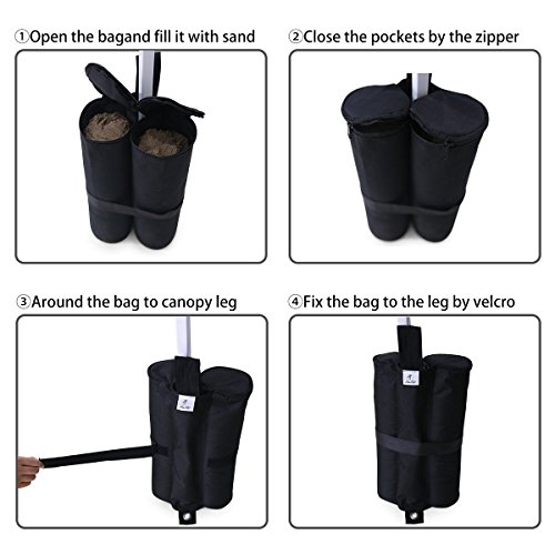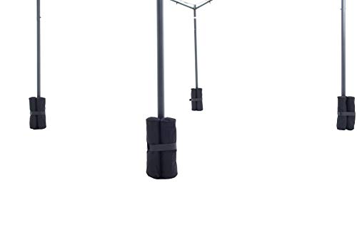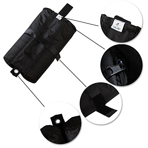 MATERIAL | Sicherlich sind die Gewichte alias dann nicht überflüssig, wenn Sie Ihr Partyzelt oder Pavillon verankert haben sollten. Wir empfehlen Ihnen die Säcke, die aus starkem 600D Oxford Nylon hergestellt wurden, mit feuchtem Sand zu einschütten. Das Gewicht wird dann ca. 14 Kilo sein. Sie erhalten somit mit 4 komplett gefüllten Säcken ein Gesamtgewicht von 56 Kilo.