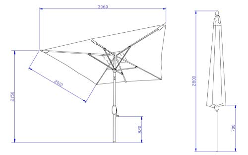BRAUCHBARKEIT | Dies ist ein günstige Sonnenschirm Variante, ohne Qualität aus den Augen zu verlieren. Dieser elegante Sonnenschirm ist ideal für Ihren Garten, aber aufgrund der anspruchsvollen Maße von 200 x 300 cm auch sehr gut für Ihren Balkon geeignet.
