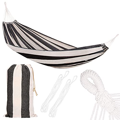✅ PARAMETER: Abschrift-Hängematte aus 65% Baumwolle, 35% Polyester, Hängematte für 1-2 Personen, Belastbarkeit bis zu 200 kg, geliefert mit zwei Schnüren, Stoffbeutel farblich abgerundet mit Hängematte