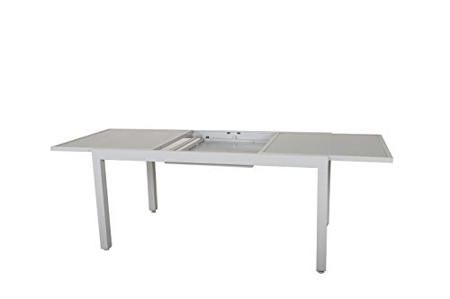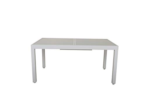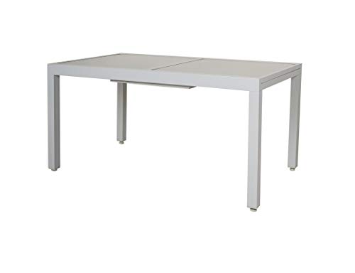 Strandgut07 Hochwertiger Aluminium Ausziehtisch mit Glasplatte 160-220 x 90 cm Gartentisch Terrassentisch Silber