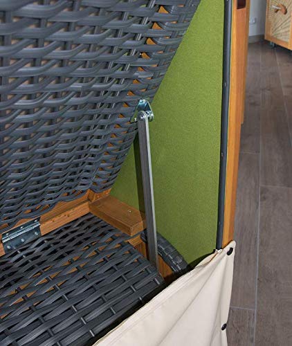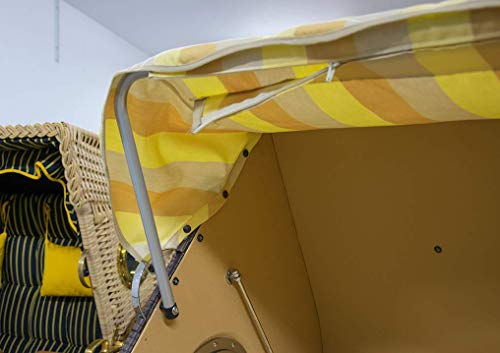 Dieser Luxus Strandkorb hat eine Breite von 150 cm, Höhe 170 cm und Schlund 93 cm.