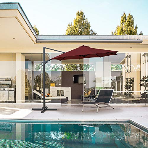 Der Sonnenschirm von SUNNY GUARD eignet sich perfekt für jede Poolterrasse, Hinterhöfe, Gärten, Terrassen, Veranden, Rasenflächen usw. Ausleger-Sonnenschirm mit einem Durchmesser von 10 Fuß, der eine bequeme Zuflucht beim Kuscheln am Nachmittag schafft. Während Sie Ihrem Außenbereich Stil verleihen. Dieser Premium-Offset-Regenschirm mit robustem Aluminiumrahmen und strapazierfähigem Polyester ist einfach zu montieren, langlebig und schön. Sie werden sich am besten entspannen.