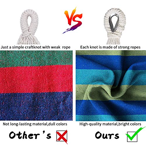 SUNNY GUARD Hängematte ist Ihre traditionelle Hängematte! Die Hängematte eignet sich hervorragend zum Aufhängen an Deck, im Garten oder zum Campen im Sommer. Reißfest und widerstandsfähig, UV-beschädigt, ebenso langlebig qua bequem und kann zur sorglosen Entspannung im Freien gelassen werden. Diese Hängematte ist einfach zu installieren, ohne dass ein Montagewerkzeug erforderlich ist. Sie ist statt dessen zwei Personen entsprechend. Hängematten machen abundant mehr Spaß, wenn Sie neben Ihrem Geliebten sind.