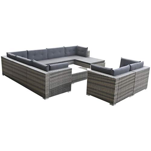 Im Lieferumfang enthalten sind 5 Sofa-Eck-Elemente, 3 Sofa-Mittelstücke, 1 Hocker, 1 Couchtisch, 9 Sitzkissen und 13 Rückenpolster. Hinweis: Wir nahe legen Ihnen, das Set bei Regen, Schnee und Frost abzudecken.
