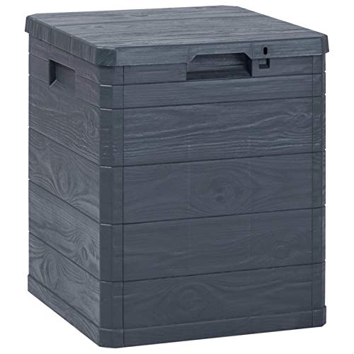 Produkte eigenschaften: Farbe: Anthrazit Material: Kunststoff (mit Holzoptik) Maße: 42,5 x 44 x 50 cm (L x B x H) Fassungsvermögen: 90 L Abschließbar (Schloss ist nicht inbegriffen) Qualifiziert statt den Innen- und Außenbereich