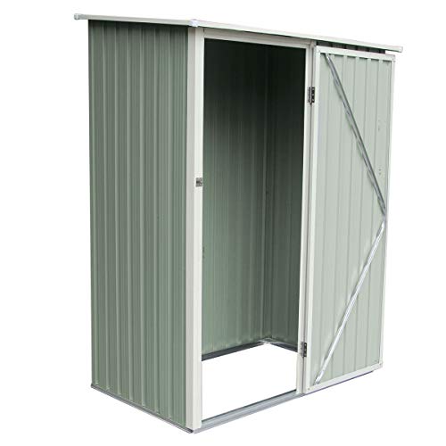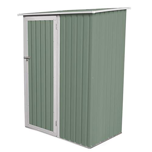 Maße: ca. 130 cm x 80 cm x 186 cm (BxTxH) Tür: ca. 170 cm x 66 cm (LxB) mit Schloss-Riegel – Pultldach – Farbe: helles Grün