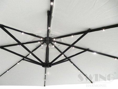Genießen Sie herrliche Sonnentage, sowie laue Sommerabende herunten dem Luxus LED-Schirm von Swing&Harmonie.
