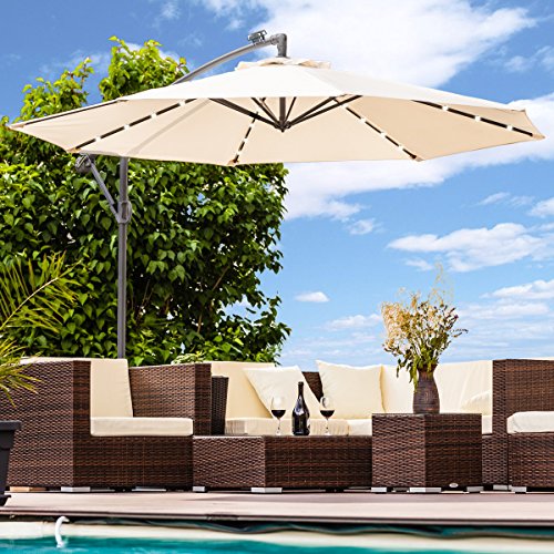Der pulverbeschichtete Rahmen, sowie der UV- beständige Schirmbezug präparieren dieses Modell ausgesprochen witterungsbeständig.